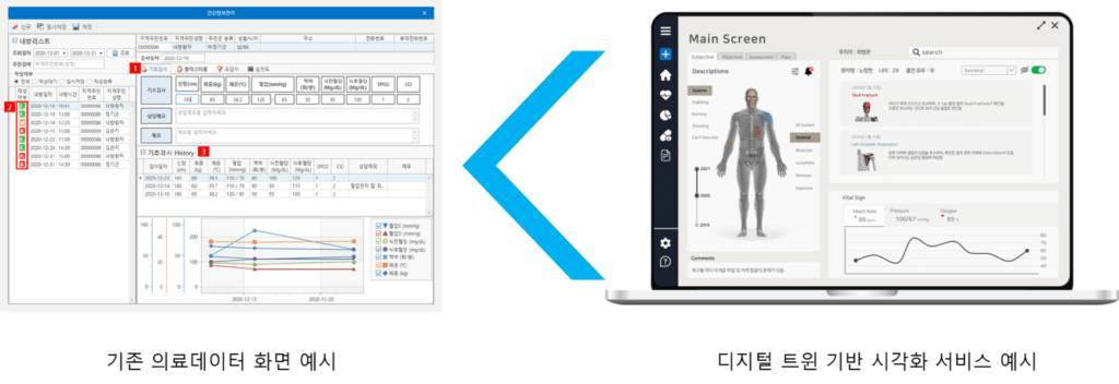 비주얼터미놀로지의 디지털트윈 기반 의료정보 플랫폼은 기존의 의료데이터의 활용성을 혁신하는 새로운 개념입니다.